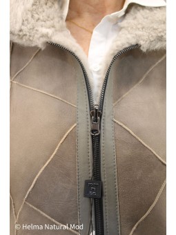 Modèle SONIA, spencer peau d'agneau, réversible coté peau et coté laine,couleur écru L' élégance à l'absolue La douceur et le confort et surtout chic Deux poches sur chaque côté, fermeture zip Longueur 52 Cm Ce vêtement taille normal, les tailles disponibles 38, 40 , 42, 44, 46 (pour une...