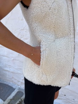 Modèle LUCHON, Gilet peau d'agneau, réversible coté peau et coté laine,couleur écru Ideal pour toutes vos sorties en ville ou toutes vos balades dans la nature La douceur et le confort associés à l’élégance Deux poches sur chaque côté, fermeture zip Longueur 60Cm Ce vêtement taille normal,...