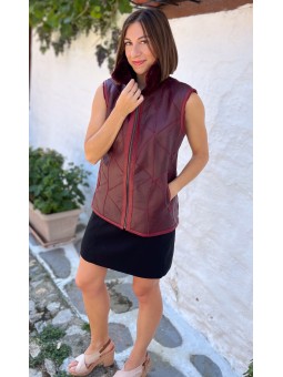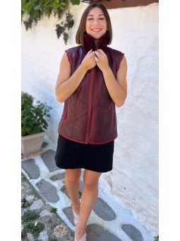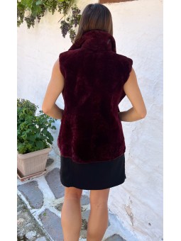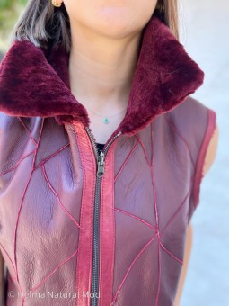 Modèle LUCHON, Gilet peau d'agneau, réversible coté peau et coté laine,couleur Lie de vin Ideal pour toutes vos sorties en ville ou toutes vos balades dans la nature La douceur et le confort associés à l’élégance Deux poches sur chaque côté, fermeture zip Longueur 60Cm Ce vêtement taille...