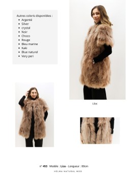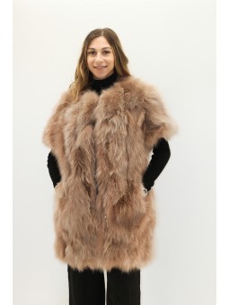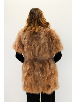 Veste en fourrure de renard, avec col, resserrée en bas.
