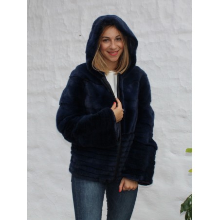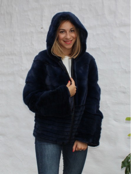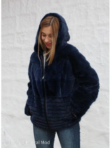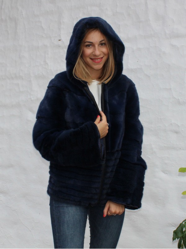 Veste en fourrure de vison avec capuche.